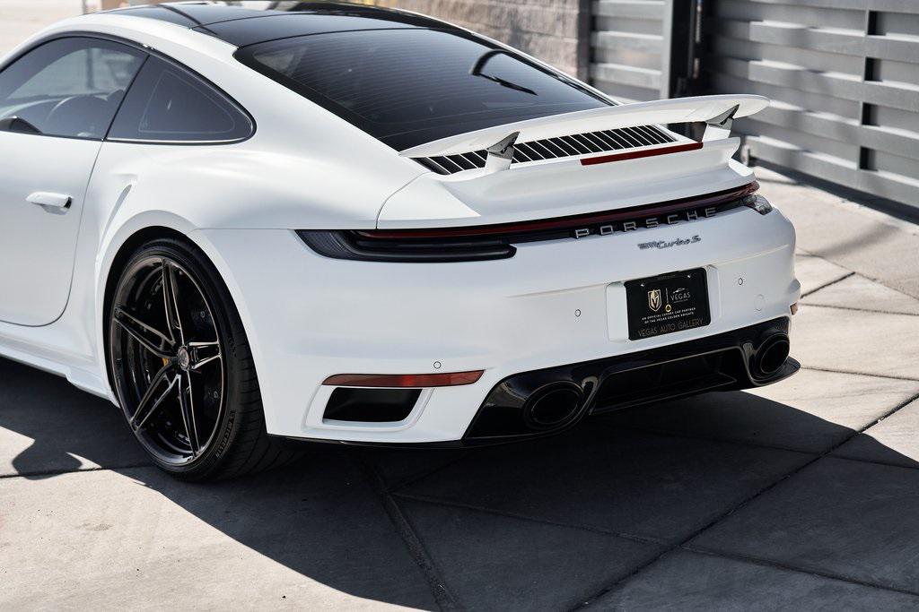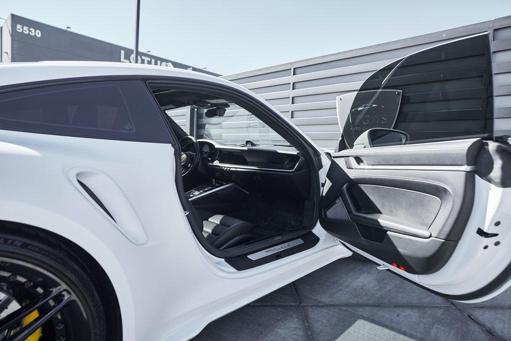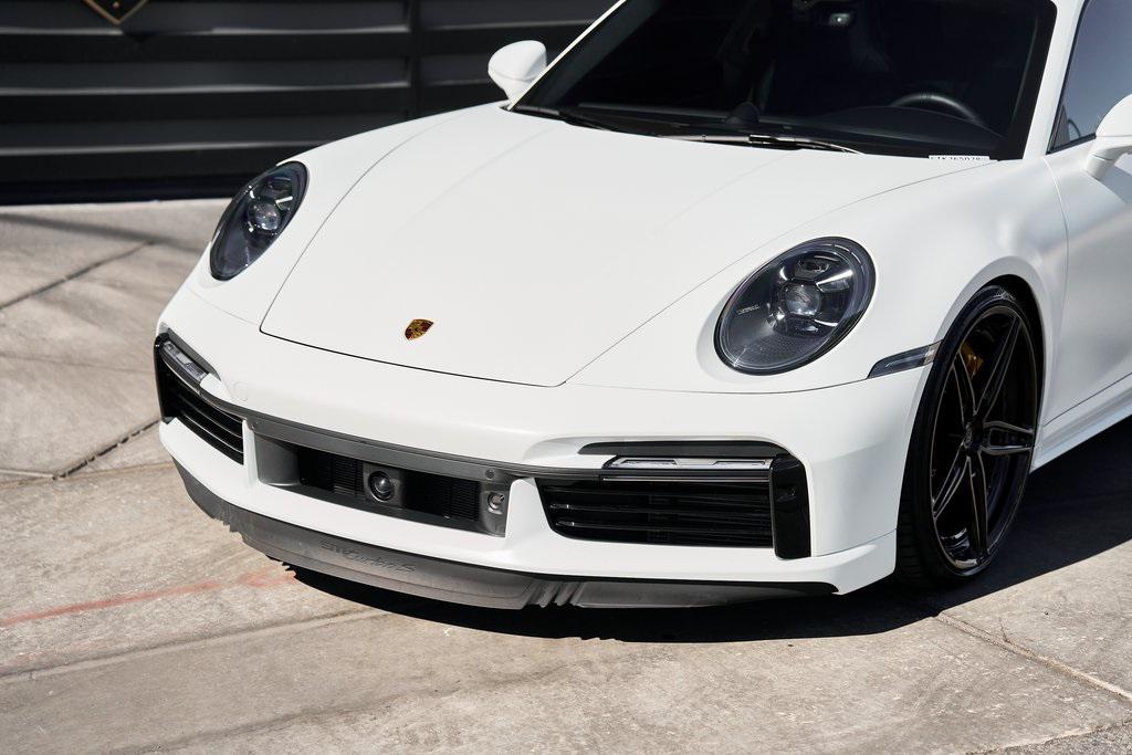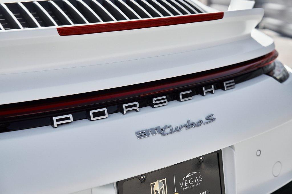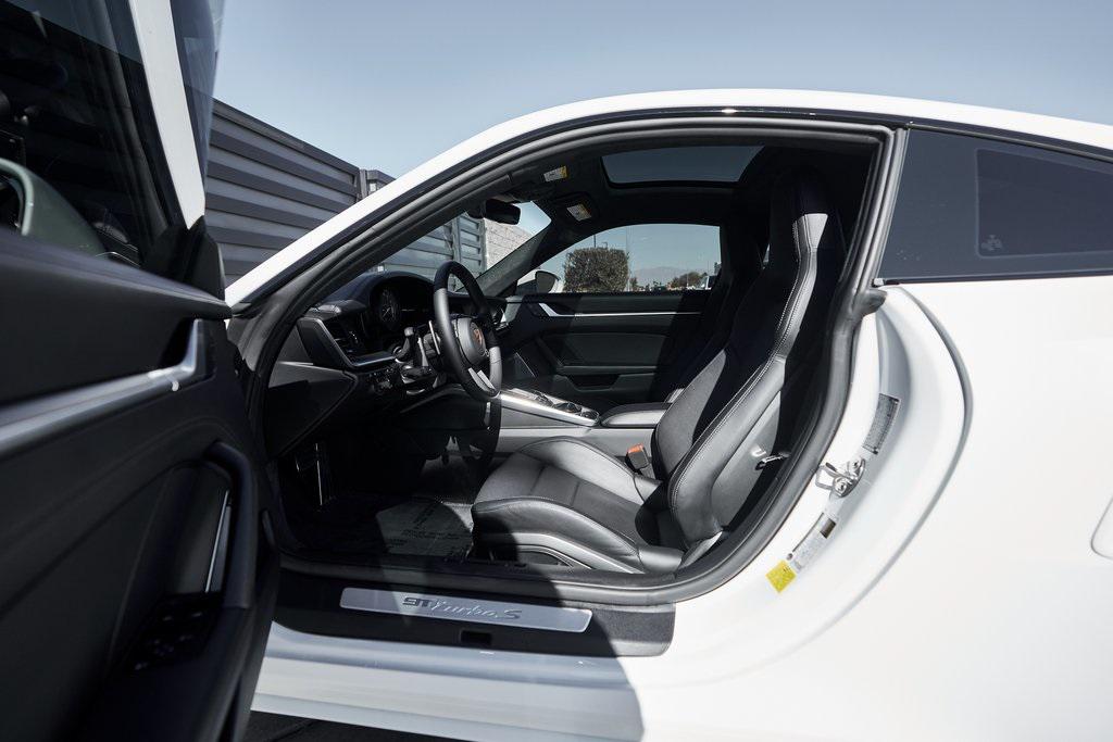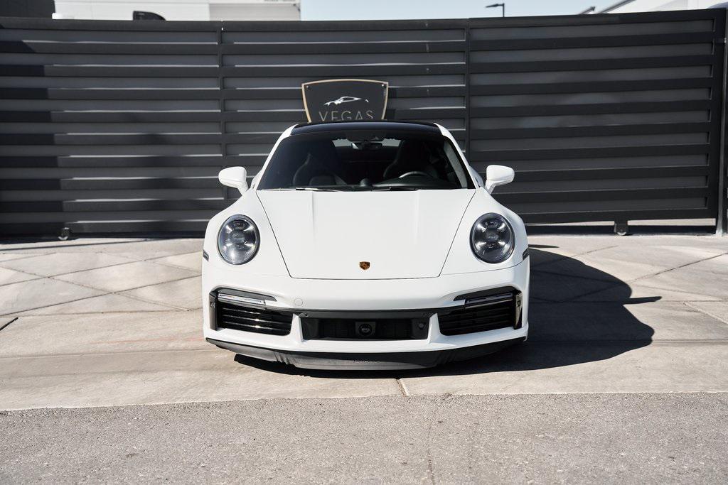 2025 PORSCHE 911 TURBO SSPORT EXHAUST SYSTEM, BURMESTER SURROUND SOUND SYSTEM, CERAMIC COMPOSITE BRAKES, SATIN PPF, AND MORE!OVERVIEWHere's a spec you don't want to miss. This range-topping 2025 Porsche 911 Turbo S represents the very best of Stuttgart engineering. At the rear is a 3.8L twin-turbo flat-six producing 640 horsepower and 590 lb-ft of torque, launching the Turbo S from 0-60 mph in a face-melting 2.6 seconds. Porsche's advanced all-wheel drive system and dynamic chassis control ensure that every ounce of power is translated into confident, razor-sharp control––allowing you to attack corners with confidence. Options are a-plenty, with active aero and a retractable rear wing working in tandem to manage airflow, and carbon ceramic brakes for fade-free stopping power. Custom ANRKY wheels, a sport exhaust system, and LED Matrix Headlights illuminate the fact that this is no base spec Carrera. Inside, you'll find 4-way power Sport Seats Plus wrapped in Black Leather with matte carbon fiber trim throughout. Premium upgrades include Night Vision Assist, a Burmester sound system, heated/ventilated front seats, and Adaptive Cruise Control. Whether you're carving through mountain passes, flying down the highway, or pulling up to a five-star hotel, the Porsche 911 Turbo S guarantees to leave you satisfied without compromise.OPTIONAL EQUIPMENTWhite (Satin PPF)Black Leather4-Way Sport Seats PlusGloss Black ANRKY WheelsPorsche Ceramic Composite Brakes $9,650Burmester High End Sound System $3,970Sport Exhaust System $3,500Porsche Dynamic Chassis Control $3,160Exterior Package Painted $3,000LED Matrix Design Headlights $2,740Night Vision Assist $2,550Matte Carbon Fiber Interior Trim $2,110Electric Glass Sunroof $2,000Adaptive Cruise Control $2,000PASM Sport Suspension $1,500Lane Change Assist $1,060Ventilated Front Seats $840Exterior Mirror Base Colored $660Ambient Lighting $580Window Trim In Gloss Black $520Power Folding Exterior Mirrors $380Ionizer $350Power Steering Plus $280Under Door Light Projectors $160Exclusive Design Fuel Cap $160Locking Wheel Bolts $60GENERALYear: 2025Mileage: 8,920VIN #: WP0AD2A96SS265028Engine Size: 3.8L H6 (Twin-Turbo)Class: CoupeHorsepower: 640Color: White (Satin PPF)Interior: Black Leather Fuel: Premium Unleaded Gasoline Gear Box: 8-Speed PDK (Automatic) Doors: 2Seats: 2+2Cylinders: 6SAFETY EQUIPMENTPorsche Stability ManagementFull-Time All-Wheel Drive Forward Collision Warning with Automatic Emergency BrakingLane Keep Assist & Lane Departure WarningOutboard Front Lap and Shoulder Safety BeltsAirbag Occupancy SensorCurtain 1st and 2nd Row AirbagsDual Stage Driver and Passenger Front AirbagsTire Specific Low Tire Pressure WarningTraction ControlAnti-Locking BrakesPerimeter AlarmAdaptive Cruise ControlNight VisionADDITIONAL INFORMATION1 Key IncludedBalance of Factory Warranty (if applicable)Extended Warranties Available