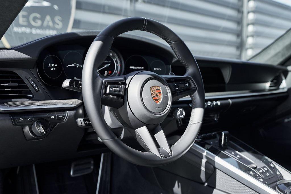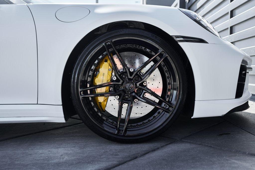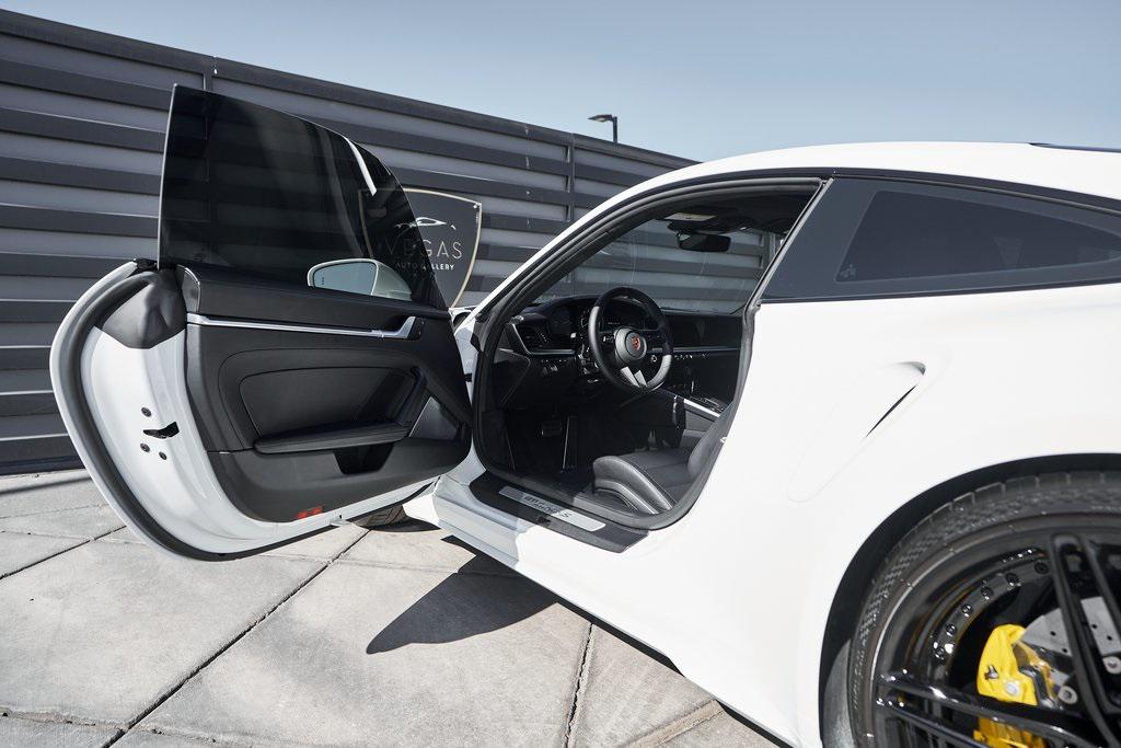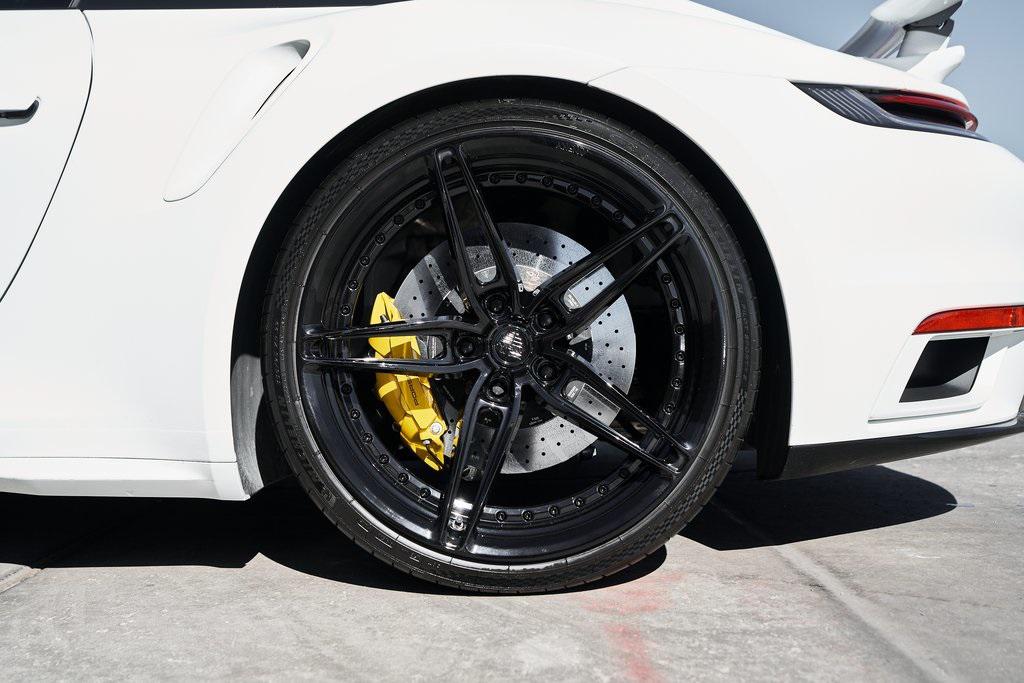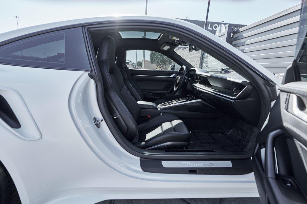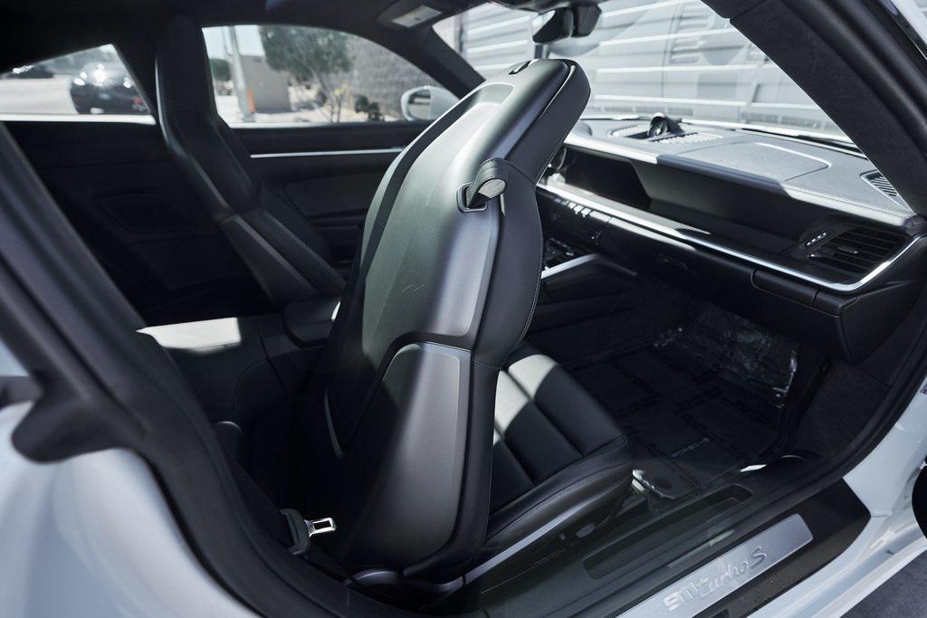 2025 PORSCHE 911 TURBO SSPORT EXHAUST SYSTEM, BURMESTER SURROUND SOUND SYSTEM, CERAMIC COMPOSITE BRAKES, SATIN PPF, AND MORE!OVERVIEWHere's a spec you don't want to miss. This range-topping 2025 Porsche 911 Turbo S represents the very best of Stuttgart engineering. At the rear is a 3.8L twin-turbo flat-six producing 640 horsepower and 590 lb-ft of torque, launching the Turbo S from 0-60 mph in a face-melting 2.6 seconds. Porsche's advanced all-wheel drive system and dynamic chassis control ensure that every ounce of power is translated into confident, razor-sharp control––allowing you to attack corners with confidence. Options are a-plenty, with active aero and a retractable rear wing working in tandem to manage airflow, and carbon ceramic brakes for fade-free stopping power. Custom ANRKY wheels, a sport exhaust system, and LED Matrix Headlights illuminate the fact that this is no base spec Carrera. Inside, you'll find 4-way power Sport Seats Plus wrapped in Black Leather with matte carbon fiber trim throughout. Premium upgrades include Night Vision Assist, a Burmester sound system, heated/ventilated front seats, and Adaptive Cruise Control. Whether you're carving through mountain passes, flying down the highway, or pulling up to a five-star hotel, the Porsche 911 Turbo S guarantees to leave you satisfied without compromise.OPTIONAL EQUIPMENTWhite (Satin PPF)Black Leather4-Way Sport Seats PlusGloss Black ANRKY WheelsPorsche Ceramic Composite Brakes $9,650Burmester High End Sound System $3,970Sport Exhaust System $3,500Porsche Dynamic Chassis Control $3,160Exterior Package Painted $3,000LED Matrix Design Headlights $2,740Night Vision Assist $2,550Matte Carbon Fiber Interior Trim $2,110Electric Glass Sunroof $2,000Adaptive Cruise Control $2,000PASM Sport Suspension $1,500Lane Change Assist $1,060Ventilated Front Seats $840Exterior Mirror Base Colored $660Ambient Lighting $580Window Trim In Gloss Black $520Power Folding Exterior Mirrors $380Ionizer $350Power Steering Plus $280Under Door Light Projectors $160Exclusive Design Fuel Cap $160Locking Wheel Bolts $60GENERALYear: 2025Mileage: 8,920VIN #: WP0AD2A96SS265028Engine Size: 3.8L H6 (Twin-Turbo)Class: CoupeHorsepower: 640Color: White (Satin PPF)Interior: Black Leather Fuel: Premium Unleaded Gasoline Gear Box: 8-Speed PDK (Automatic) Doors: 2Seats: 2+2Cylinders: 6SAFETY EQUIPMENTPorsche Stability ManagementFull-Time All-Wheel Drive Forward Collision Warning with Automatic Emergency BrakingLane Keep Assist & Lane Departure WarningOutboard Front Lap and Shoulder Safety BeltsAirbag Occupancy SensorCurtain 1st and 2nd Row AirbagsDual Stage Driver and Passenger Front AirbagsTire Specific Low Tire Pressure WarningTraction ControlAnti-Locking BrakesPerimeter AlarmAdaptive Cruise ControlNight VisionADDITIONAL INFORMATION1 Key IncludedBalance of Factory Warranty (if applicable)Extended Warranties Available