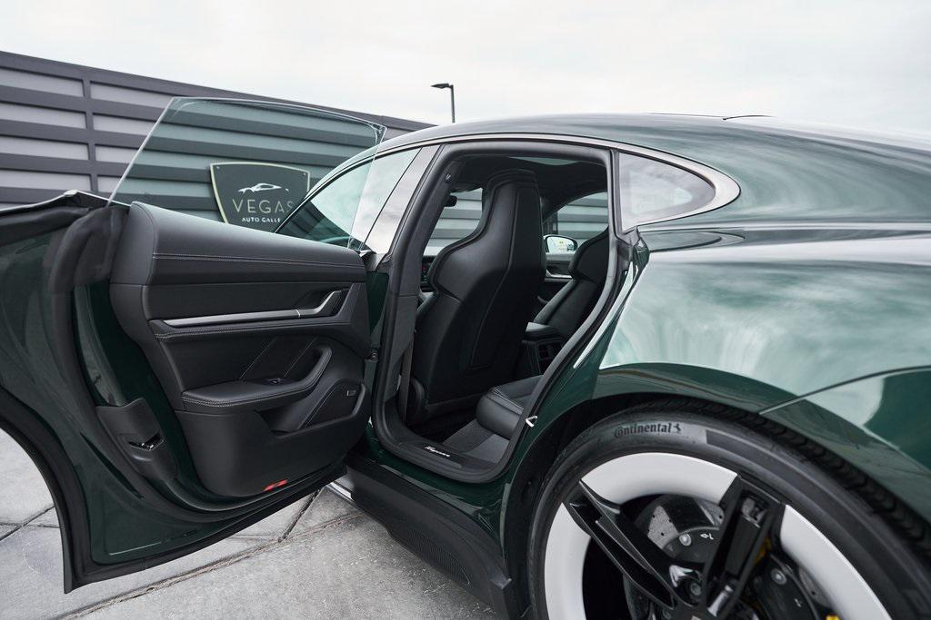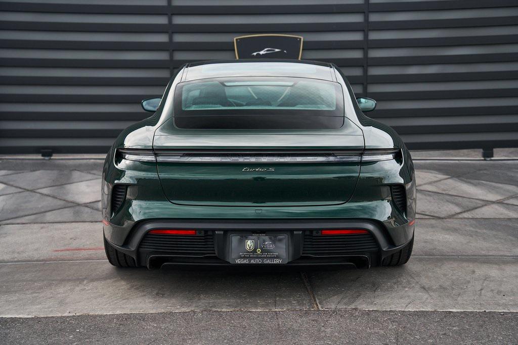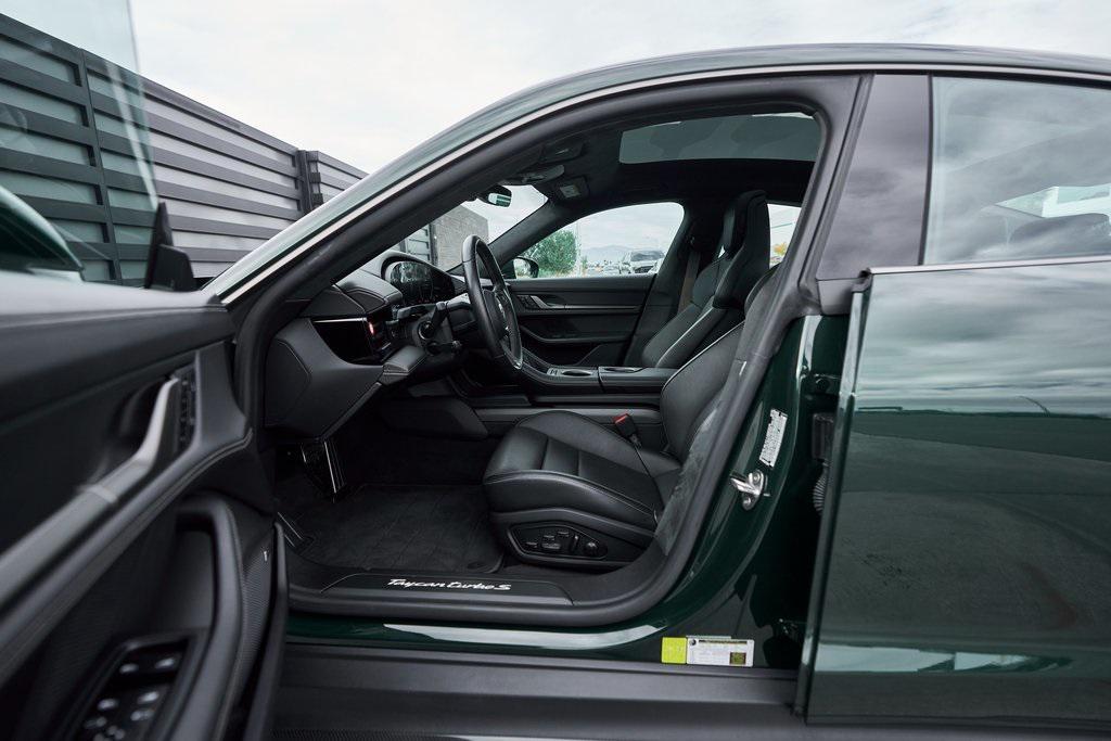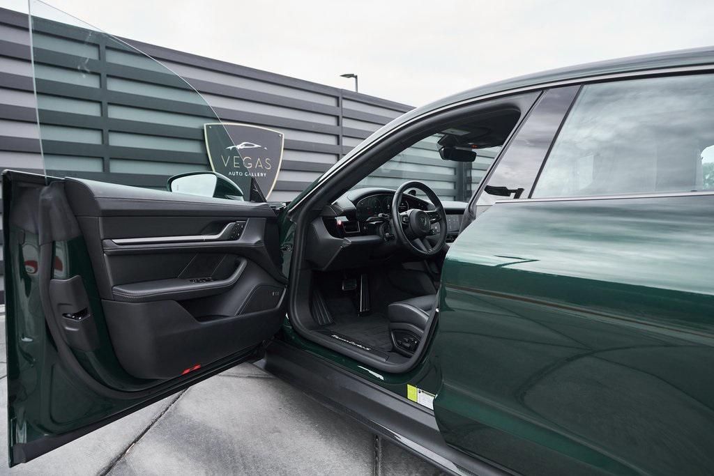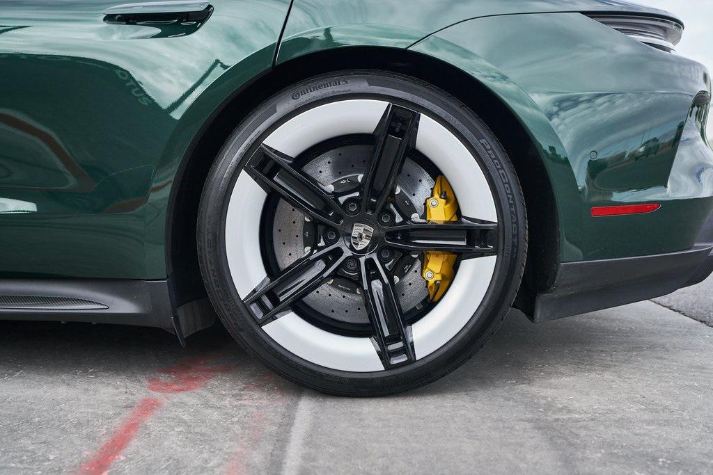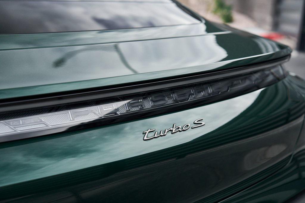 2025 PORSCHE TAYCAN TURBO SCLIMATE CONTROLLED SEATS, PORSCHE ACTIVE RIDE, PREMIUM PACKAGE, AND MORE!OVERVIEWThis isn't just an EV. This is a Porsche––and the 2025 Taycan Turbo S is proof that performance and razor-sharp driving dynamics didn't die with the internal combustion engine––they just evolved. Dual electric motors deliver a staggering 938 horsepower and up to 818 lb-ft of torque when Launch Control is engaged, propelling the Taycan Turbo S from 0-60 mph in an astonishing 2.3 seconds. Porsche's advanced two-speed rear transmission and all-wheel-drive system ensure relentless acceleration, while the updated 2025 architecture boosts efficiency and range––offering up to 320 miles on a full charge. And thanks to its low-slung battery, it doesn't just go fast in a straight line, it corners like a 911 on rails, with grip for days and instant torque vectoring. Step inside and you're greeted with a cockpit that blends Porsche tradition with next-gen tech. From the wraparound digital displays to the 18-way Adaptive Sport Seats, everything is focused, intentional, and driver-first. Some notable added options include heated/ventilated front seats, 4-zone climate control, and ceramic composite brakes. Designed to thrill, this stunning Porsche Taycan Turbo S delivers loads of creature comforts, cutting-edge technology, and the ultimate expression of Porsche engineering in an all-electric form.OPTIONAL EQUIPMENTOak Green Metallic Neo (Clear Bra) $2,850Black Leather21"" Mission E Design Wheels $3,570 18-Way Sport Seats PlusPorsche Active Ride $7,140Porsche Ceramic Composite Brakes $5,580 Premium Package $4,980Adaptive Cruise ControlFront Seat VentilationSurround View CameraHead-Up DisplayStorage PackageSoft Close DoorsAir Quality SystemPanoramic Roof w/Variable Light Control $4,760Porsche Innodrive w/Active Lane Keep $2,750Interior Trim In Matte Carbon $2,460Illuminated Door Sill Guards In Matte Carbon Fiber $1,610Passenger Display $1,4904-Zone Climate Control $1,020Porsche Electric Sport Sound $500Rear 2+1 Seats $480Under Door Puddle Light $330GENERALYear: 2025Mileage: 1,998VIN #: WP0AC2Y13SSA55069Engine Size: EV Class: SedanHorsepower: 938Color: Oak Green Metallic NeoInterior: Black Leather Gear Box: 2-speed rear gearboxDoors: 4Seats: 5SAFETY EQUIPMENTPorsche Stability ManagementForward Collision Warning with Automatic Emergency BrakingLane Keep Assist & Lane Departure WarningOutboard Front Lap and Shoulder Safety BeltsAirbag Occupancy SensorCurtain 1st and 2nd Row AirbagsDual Stage Driver and Passenger Front AirbagsTire Specific Low Tire Pressure WarningTraction ControlAnti-Locking BrakesPerimeter AlarmADDITIONAL INFORMATION1 Key IncludedBalance of Factory Warranty (if applicable)Extended Warranties Available