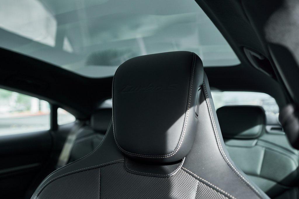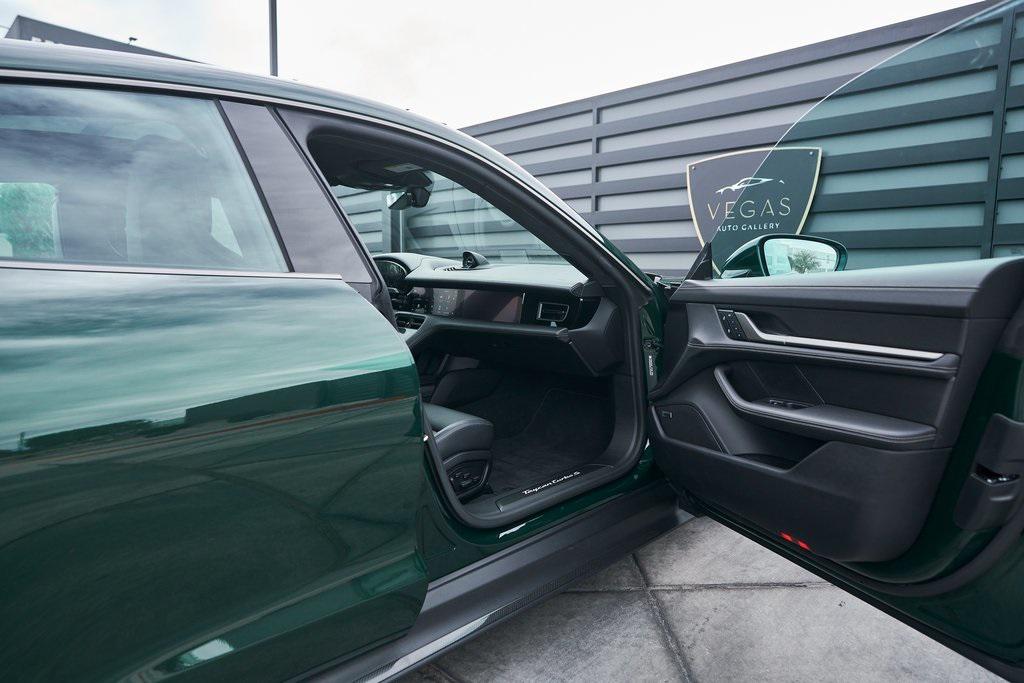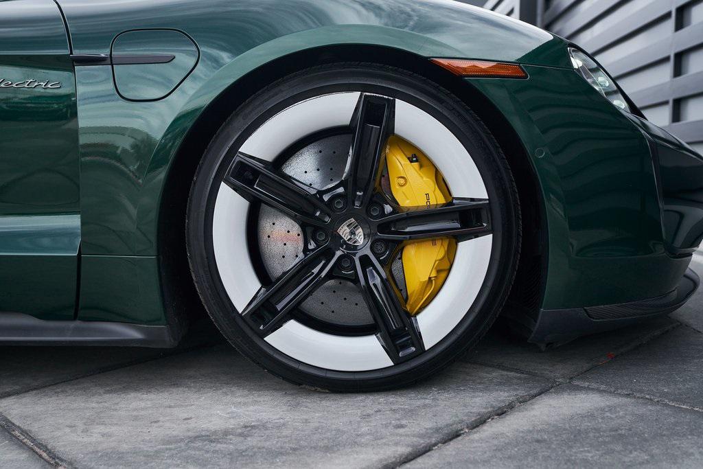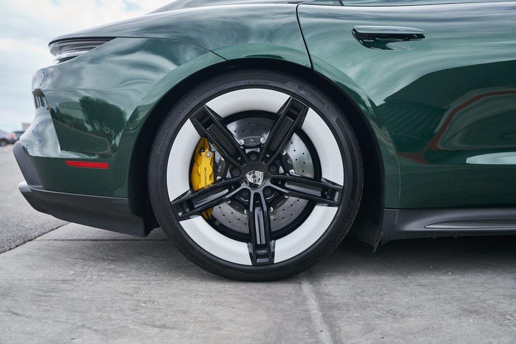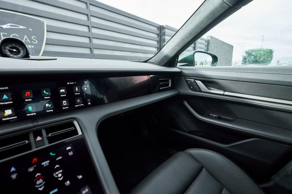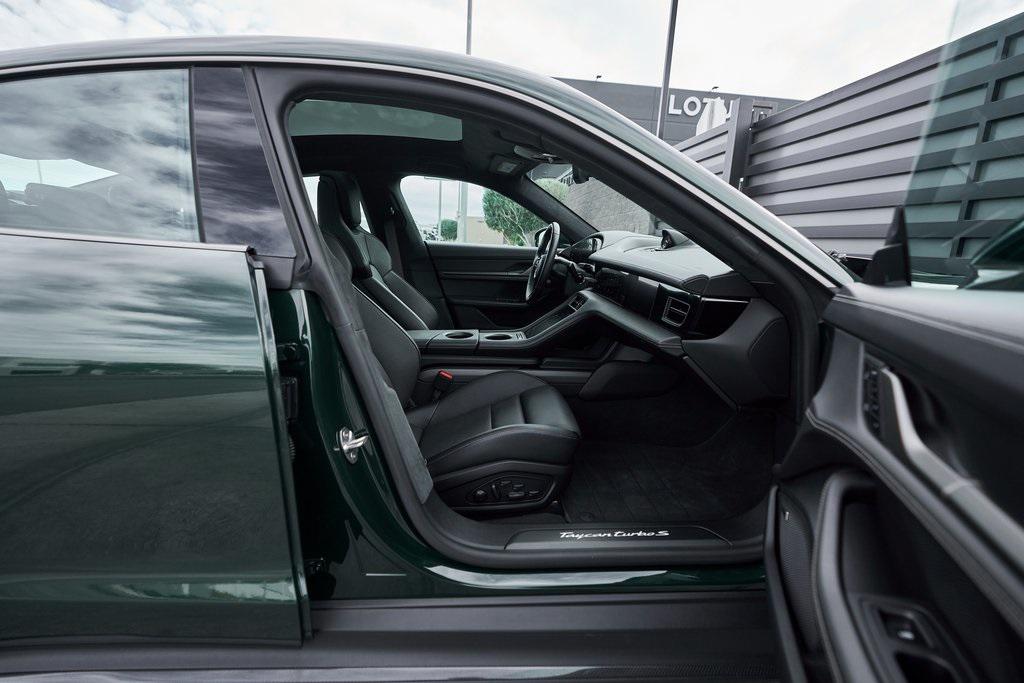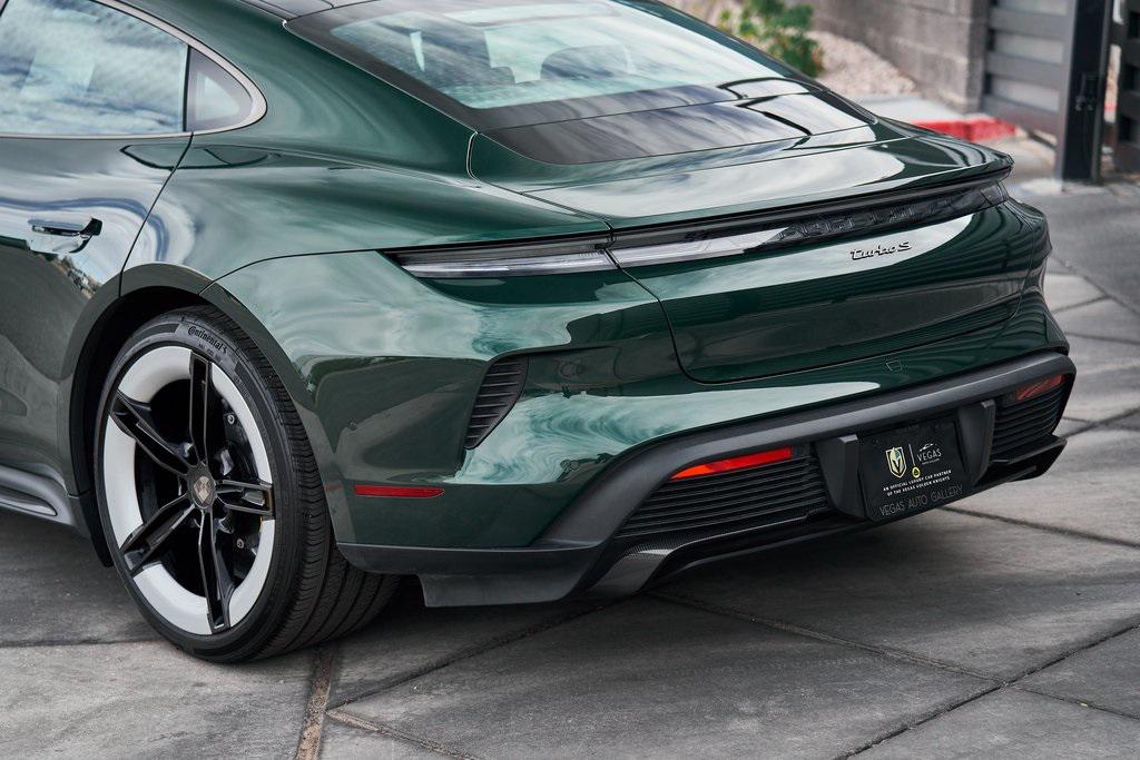 2025 PORSCHE TAYCAN TURBO SCLIMATE CONTROLLED SEATS, PORSCHE ACTIVE RIDE, PREMIUM PACKAGE, AND MORE!OVERVIEWThis isn't just an EV. This is a Porsche––and the 2025 Taycan Turbo S is proof that performance and razor-sharp driving dynamics didn't die with the internal combustion engine––they just evolved. Dual electric motors deliver a staggering 938 horsepower and up to 818 lb-ft of torque when Launch Control is engaged, propelling the Taycan Turbo S from 0-60 mph in an astonishing 2.3 seconds. Porsche's advanced two-speed rear transmission and all-wheel-drive system ensure relentless acceleration, while the updated 2025 architecture boosts efficiency and range––offering up to 320 miles on a full charge. And thanks to its low-slung battery, it doesn't just go fast in a straight line, it corners like a 911 on rails, with grip for days and instant torque vectoring. Step inside and you're greeted with a cockpit that blends Porsche tradition with next-gen tech. From the wraparound digital displays to the 18-way Adaptive Sport Seats, everything is focused, intentional, and driver-first. Some notable added options include heated/ventilated front seats, 4-zone climate control, and ceramic composite brakes. Designed to thrill, this stunning Porsche Taycan Turbo S delivers loads of creature comforts, cutting-edge technology, and the ultimate expression of Porsche engineering in an all-electric form.OPTIONAL EQUIPMENTOak Green Metallic Neo (Clear Bra) $2,850Black Leather21"" Mission E Design Wheels $3,570 18-Way Sport Seats PlusPorsche Active Ride $7,140Porsche Ceramic Composite Brakes $5,580 Premium Package $4,980Adaptive Cruise ControlFront Seat VentilationSurround View CameraHead-Up DisplayStorage PackageSoft Close DoorsAir Quality SystemPanoramic Roof w/Variable Light Control $4,760Porsche Innodrive w/Active Lane Keep $2,750Interior Trim In Matte Carbon $2,460Illuminated Door Sill Guards In Matte Carbon Fiber $1,610Passenger Display $1,4904-Zone Climate Control $1,020Porsche Electric Sport Sound $500Rear 2+1 Seats $480Under Door Puddle Light $330GENERALYear: 2025Mileage: 1,998VIN #: WP0AC2Y13SSA55069Engine Size: EV Class: SedanHorsepower: 938Color: Oak Green Metallic NeoInterior: Black Leather Gear Box: 2-speed rear gearboxDoors: 4Seats: 5SAFETY EQUIPMENTPorsche Stability ManagementForward Collision Warning with Automatic Emergency BrakingLane Keep Assist & Lane Departure WarningOutboard Front Lap and Shoulder Safety BeltsAirbag Occupancy SensorCurtain 1st and 2nd Row AirbagsDual Stage Driver and Passenger Front AirbagsTire Specific Low Tire Pressure WarningTraction ControlAnti-Locking BrakesPerimeter AlarmADDITIONAL INFORMATION1 Key IncludedBalance of Factory Warranty (if applicable)Extended Warranties Available